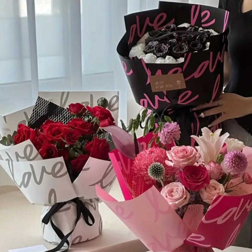 اجعل باقة الورد الخاصة بك أكثر تألقًا وأناقة مع تغليف باقات ورد بلاستيك بتصميم LOVE العصري. يتميز بتصميم جريء وألوان جذابة تضيف لمسة جمالية مثالية لهداياك ومناسباتك الخاصة.