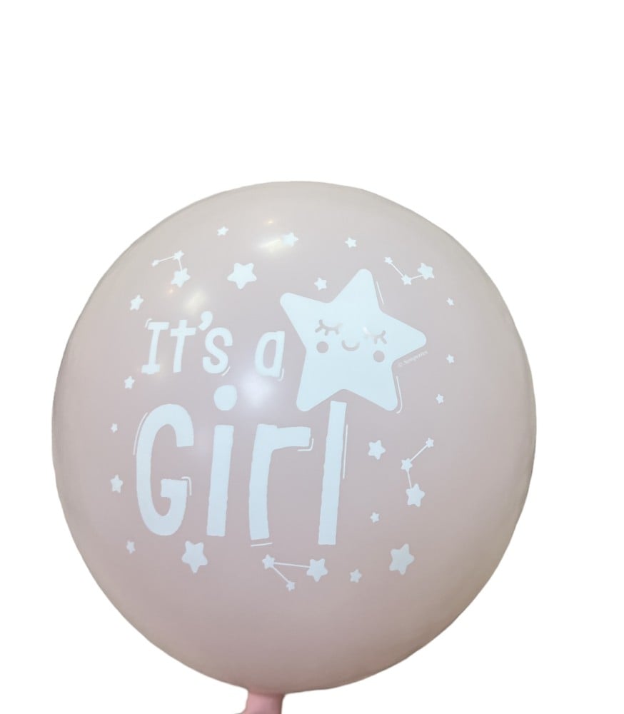 - بالونات مواليد بنات يتميز بتصميم رائع برسومات نجوم لطيفة وجملة It's a Girl، مثالي لحفلات المولود الجديد.